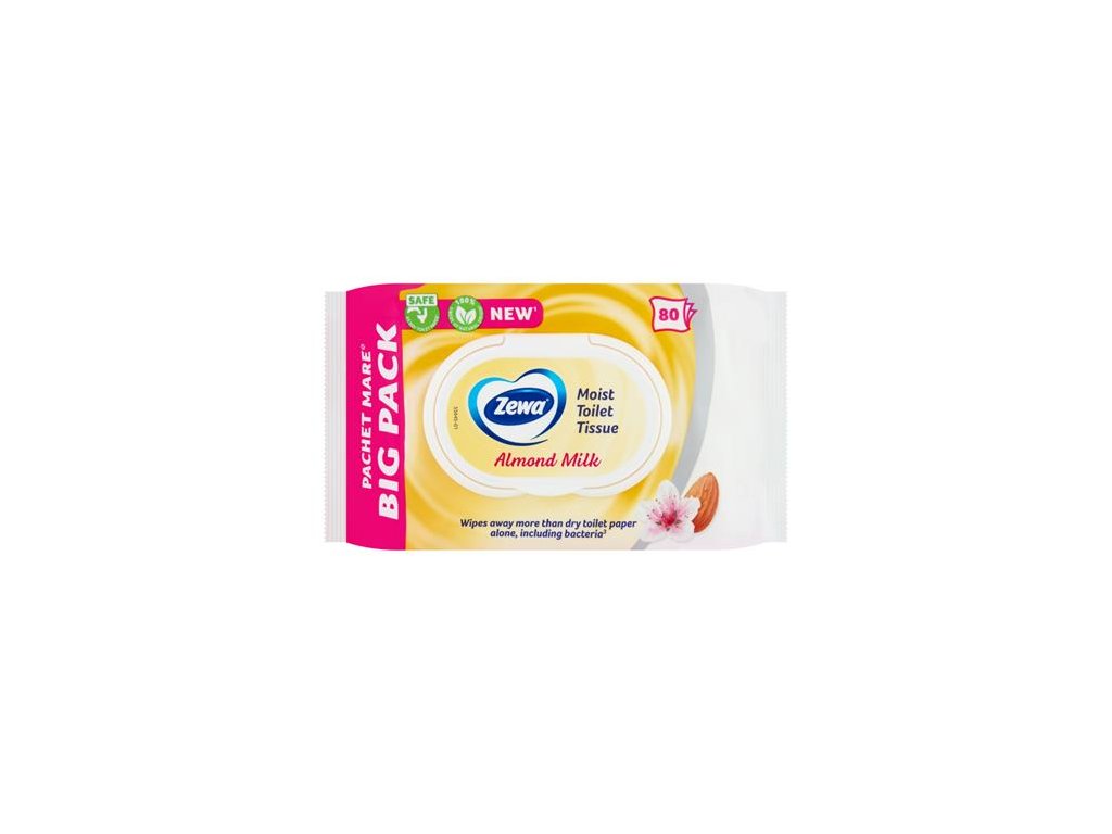 Vlhčený toaletný papier Zewa je teraz dostupný aj vo veľkom balení 80 listov. S uzatvárateľným vekom, aby si obliečky udržali vlhkosť po dlhú dobu. Vlhkým toaletným papierom Zewa poskytujeme dôkladnú starostlivosť o intímne miesta nášho tela. Používa sa spolu so suchým toaletným papierom, odstraňuje viac baktérií ako samotný tradičný toaletný papier. Toaletný papier je optimálne navlhčený, aby sa dôkladne čistil, no nezanechával pocit vlhkosti. Mokrý toaletný papier Zewa sa teraz po spláchnutí toalety rozpúšťa dvakrát rýchlejšie, vďaka čomu je rovnako bezpečný ako suchý toaletný papier.Dodatočné parametre