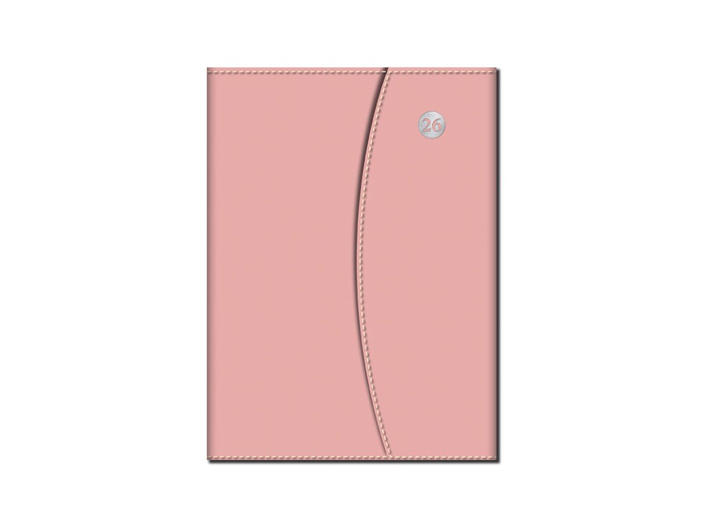 Týždenný stĺpcový diár z ekologickej kože doplnený ozdobným prešitím, strieborná razba roka, magnetické zatváranie.Dodatočné parametre