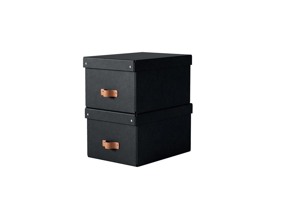 Súprava dvoch stredne veľkých úložných boxov s vekom vyrobených zo 100% recyklovanej lepenky s certifikátom FSC v modernom a čistom dizajne, ktorý doplní vašu domácnosť aj kanceláriu.