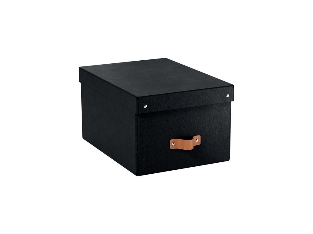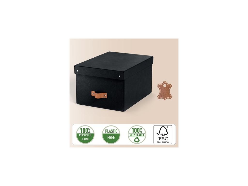 Štýlová kožená rukoväť uľahčuje vyberanie kartónových úložných boxov z políc, úložných či šatníkov.