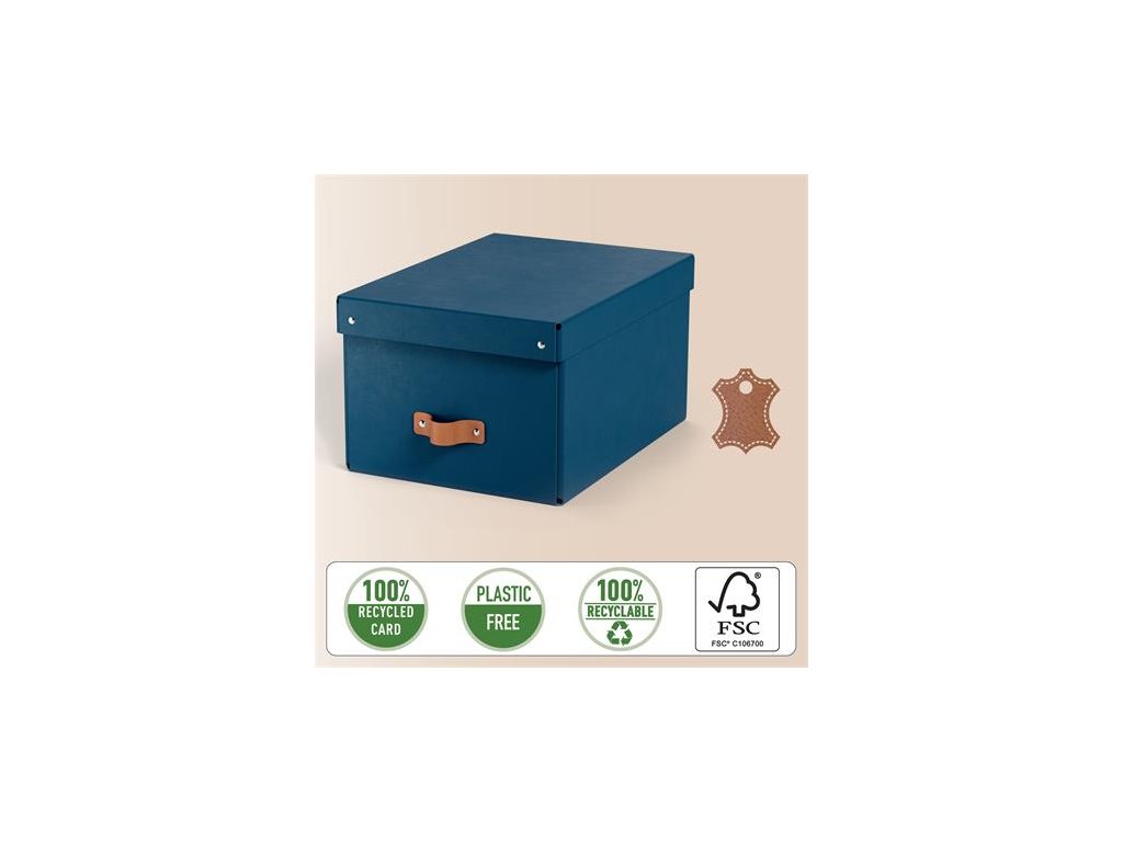 Štýlová kožená rukoväť uľahčuje vyberanie kartónových úložných boxov z políc, úložných či šatníkov.