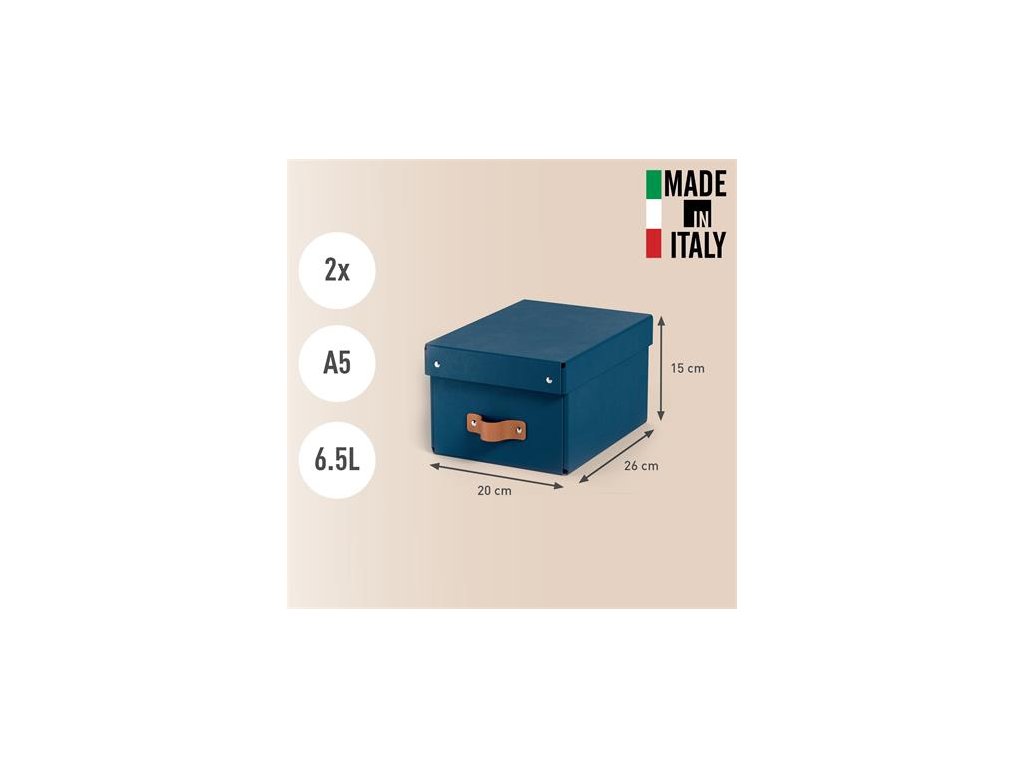 Štýlová kožená rukoväť uľahčuje vyberanie kartónových úložných boxov z políc, úložných či šatníkov.