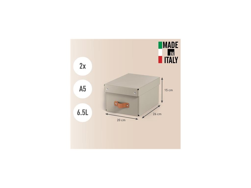 Súprava dvoch malých úložných boxov s vekom vyrobených zo 100% recyklovanej lepenky s certifikátom FSC v modernom a čistom dizajne, ktorý doplní vašu domácnosť aj kanceláriu.