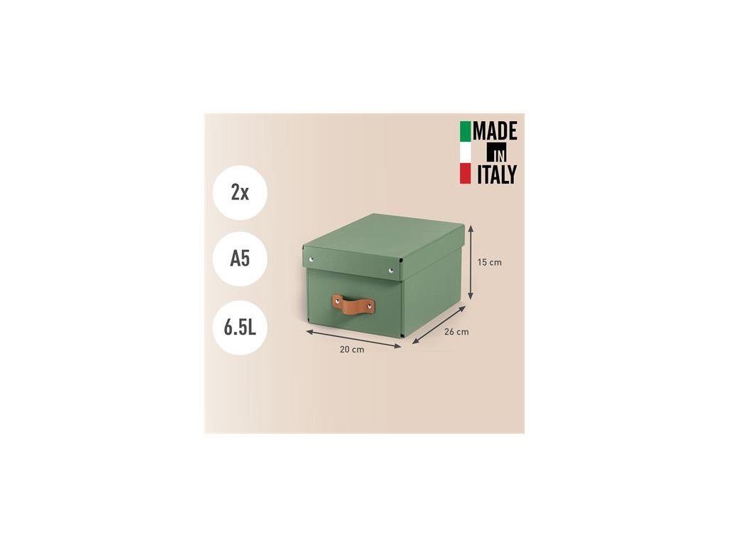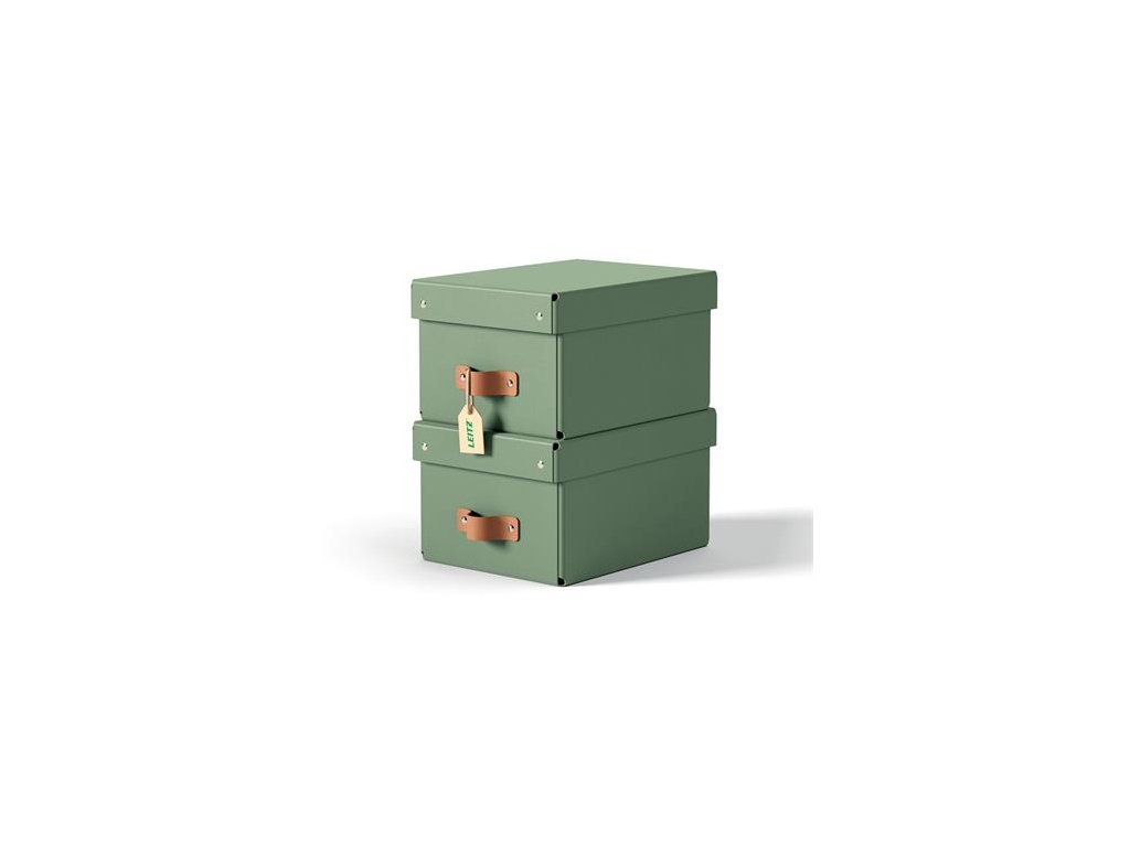 Súprava dvoch malých úložných boxov s vekom vyrobených zo 100% recyklovanej lepenky s certifikátom FSC v modernom a čistom dizajne, ktorý doplní vašu domácnosť aj kanceláriu.
