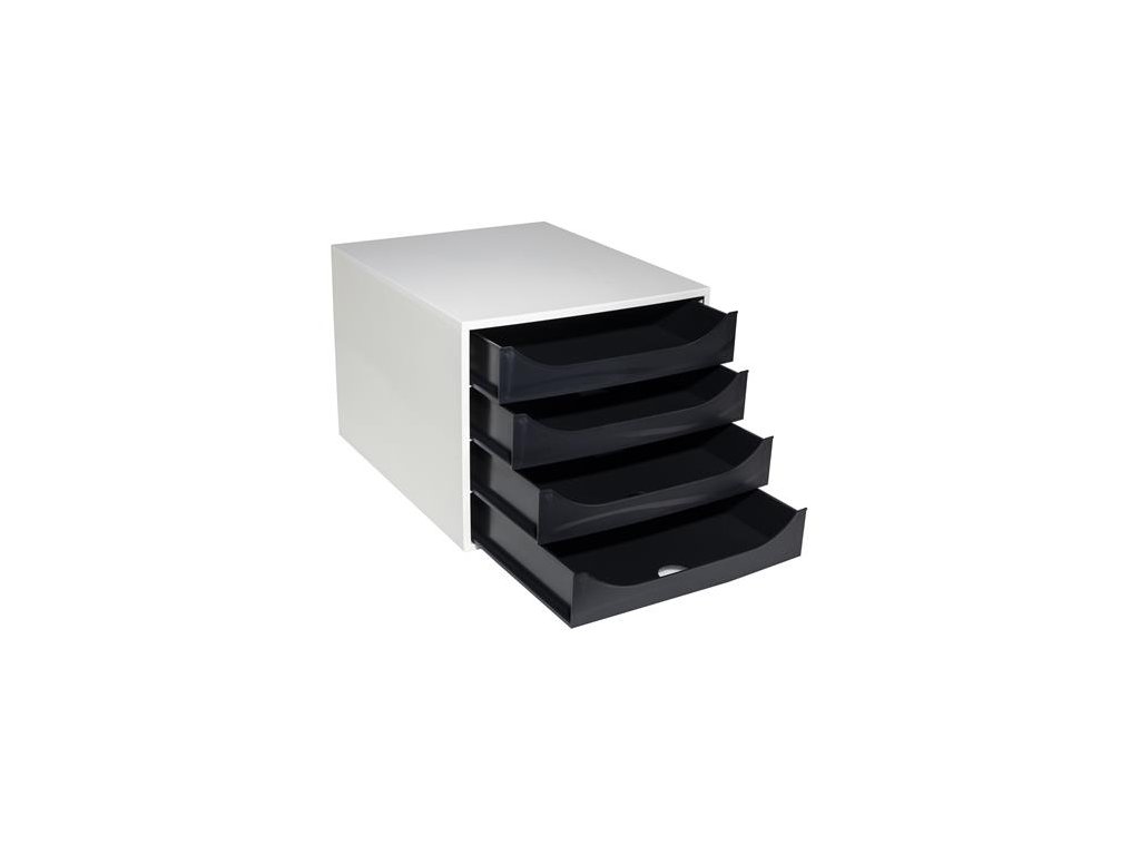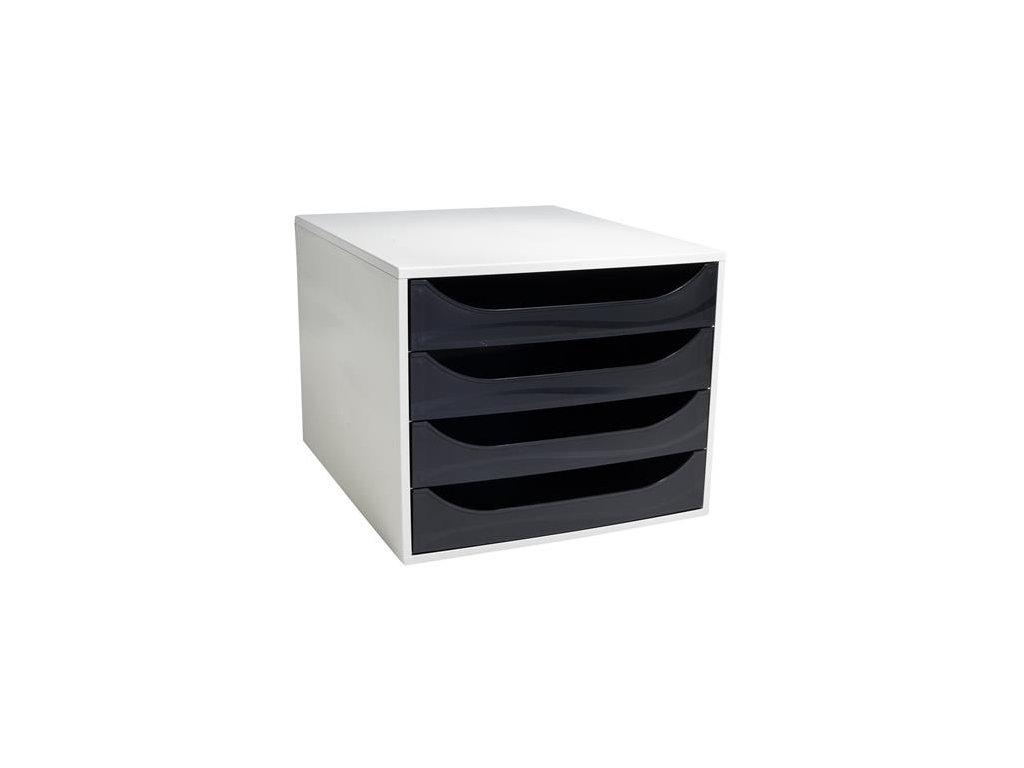 Úložný box na dokumenty, plastový, 4-zásuvkový, EXACOMPTA "Ecobox Office", sivá-čierna