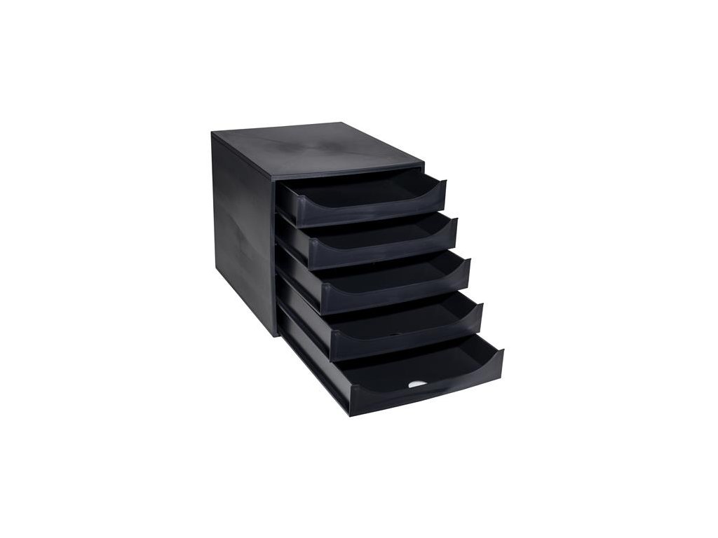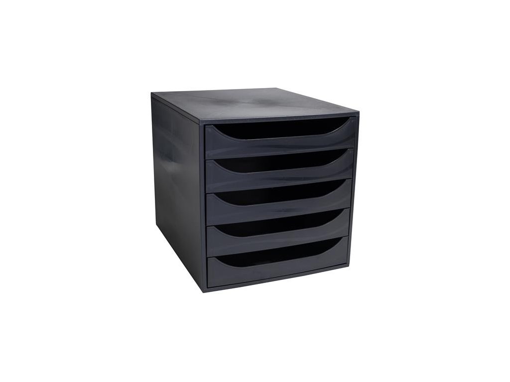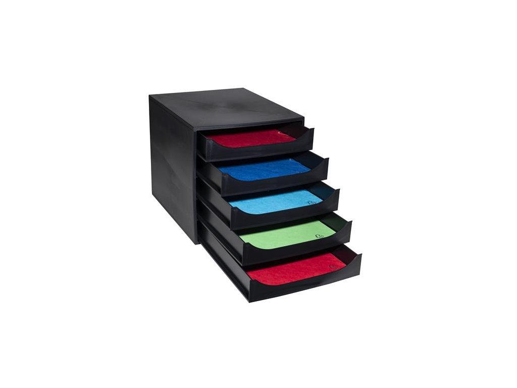 Úložný box na dokumenty, plastový, 5-zásuvkový, EXACOMPTA "Ecobox ExoBlack", čierny