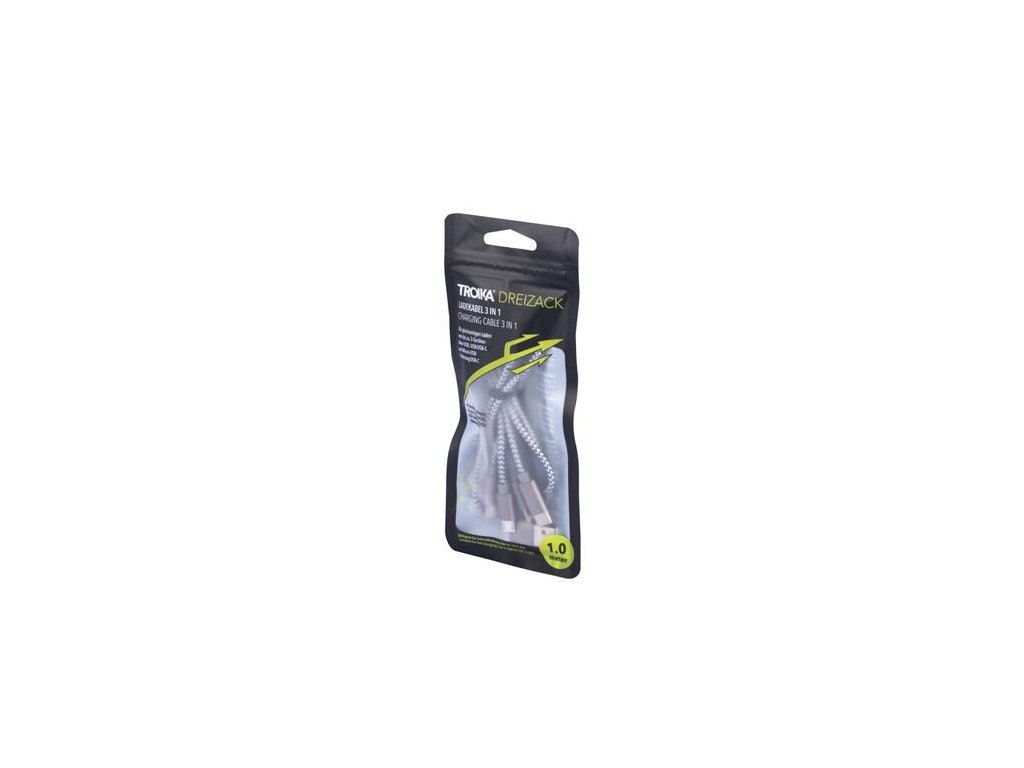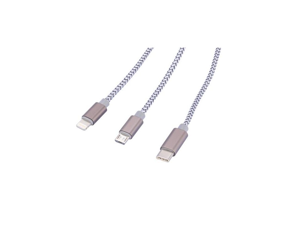 Univerzálny kábel 3 v 1, 1 m, TROIKA "Dreizack", sivá