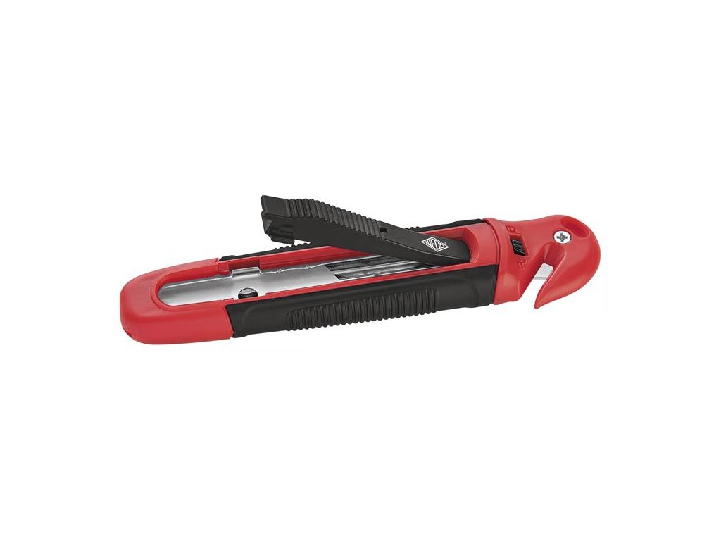 Univerzálny odlamovací nôž, 18 mm, s rezačkou na fóliu, WEDO "Safety", červená/čierna
