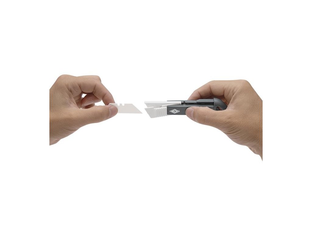 - automaticky zatiahnuteľná, pružinová, keramická čepeľ v tvaru lichobežníka - šírka čepele: 19 mm - ABS plastový kryt - závesný - vhodný pre pravákov aj ľavákov - schválené inštitútom TÜV/GS - výhody keramických čepelí: sú odolné hrdziam a chemikáliám, majú výrazne dlhšiu životnosť oproti bežným čepeliam, nízke riziko poranenia pri manipulácii, sú nevodivé, nemagnetické, dajú sa využívať aj pri vyšších teplotách - obj. kód náhradnej čepele: UW040Dodatočné parametre