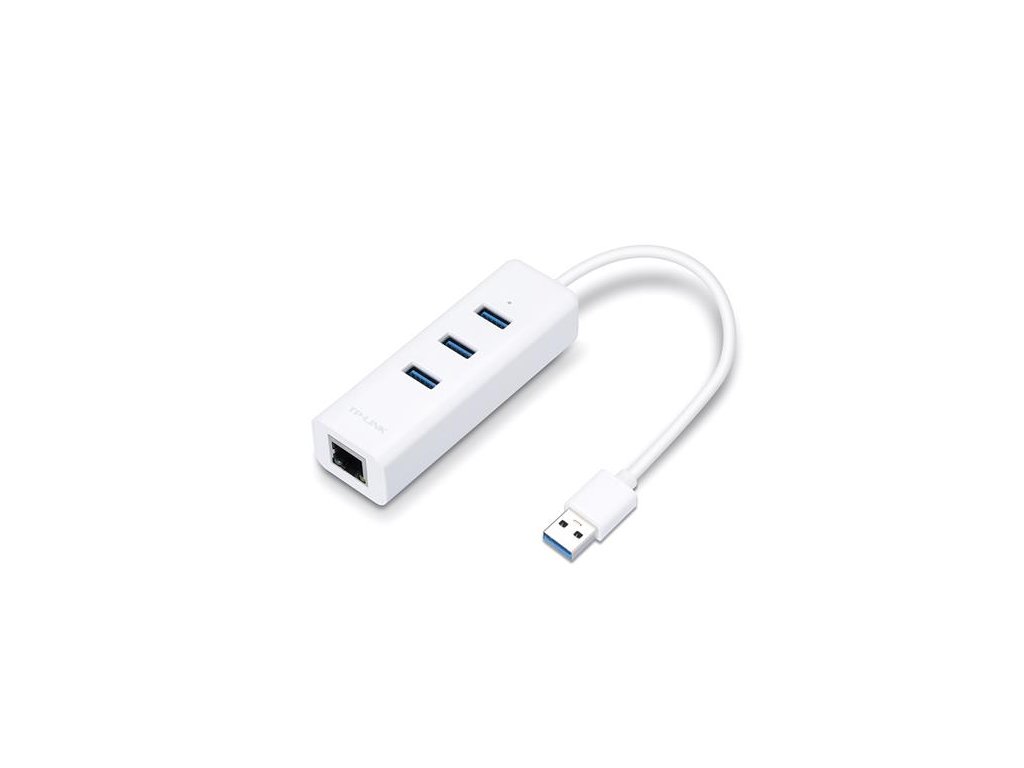 USB ethernetový sieťový adaptér s USB hubom, 3 porty, USB 3.0, TP-Link "UE330"