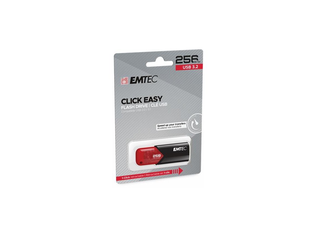 USB kľúč, 256GB, USB 3.2, EMTEC "B110 Click Easy", čierna-červená