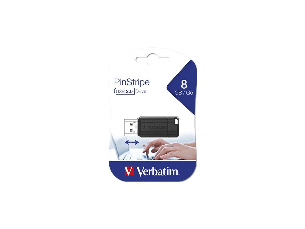 USB kľúč, 8 GB, USB 2.0, 10/4MB/sec, VERBATIM "PinStripe", čierna