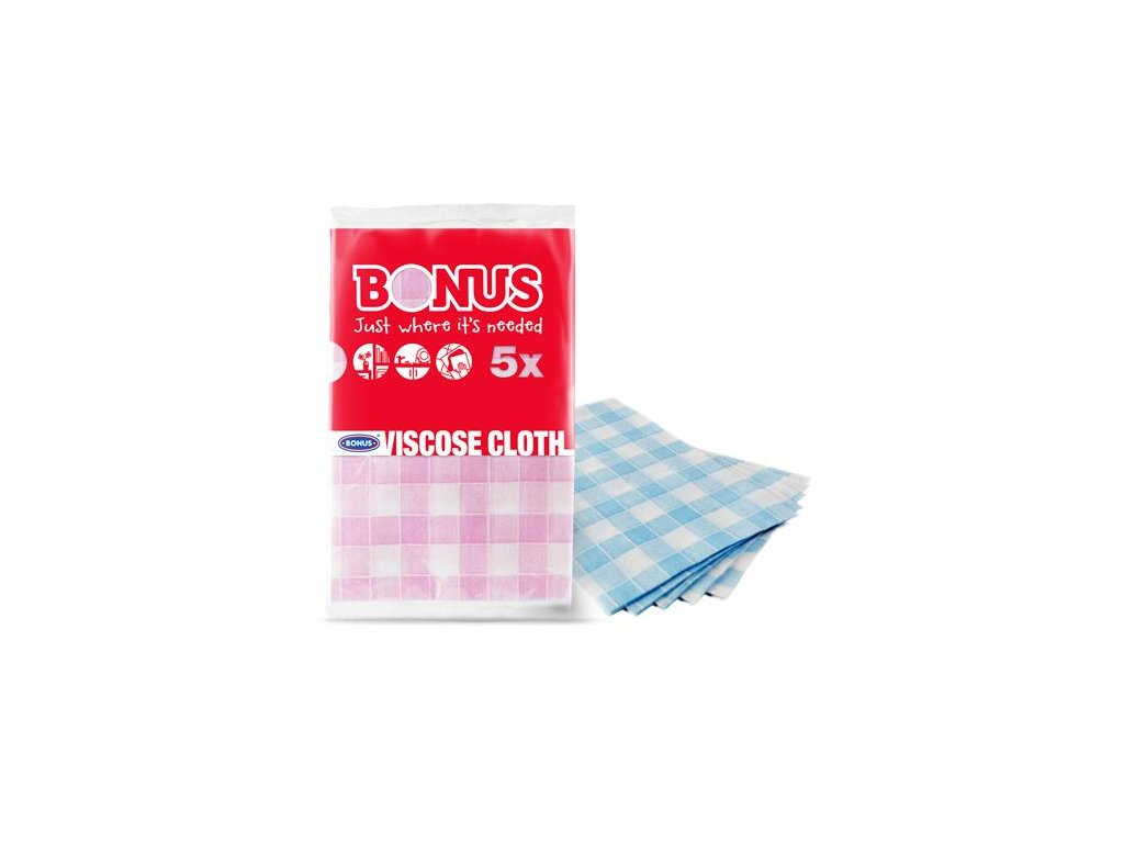BONUS viskózna utierka na riad kombinuje výhody kuchynskej utierky a hubky na umývanie riadu. - tenká kuchynská utierka so zložením 30 % polyester a 70 % viskóza, ideálna na utieranie mokrého riadu - mimoriadne odolná - tenká, ľahko sa používa a rýchlo schne- viskóznu utierku po použití dôkladne prepláchnite, vyžmýkajte a skladujte na suchom mieste - rozmery: 52 x 36cm - 5 ks/bal - mix farieb (modrá a ružová), farba sa nedá vybrať