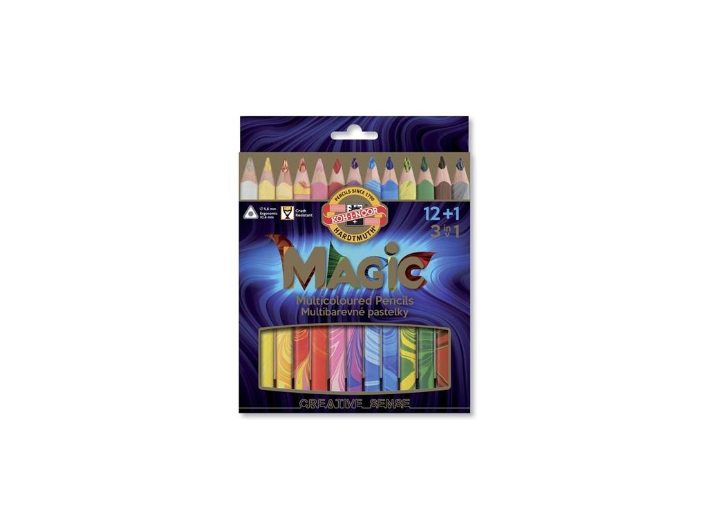 Viacfarebná ceruzka, sada, trojhranná, KOH-I-NOOR "Magic 3408", 12+1 rôznych farieb