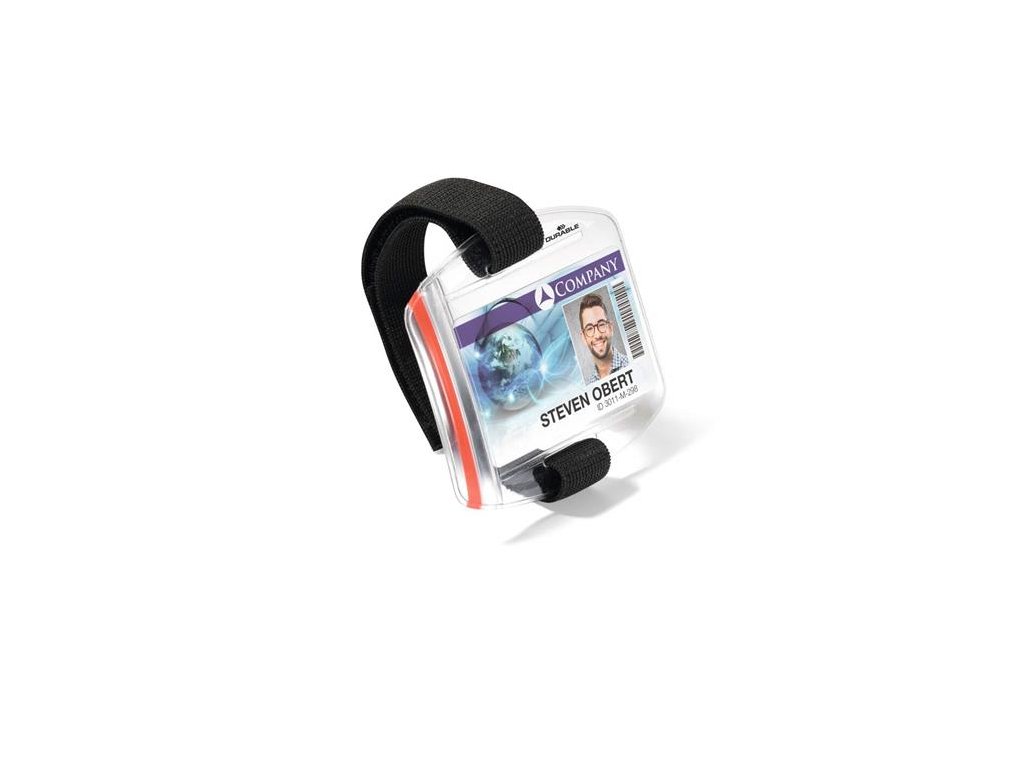 Visačka na identifikačnú kartu, na 1 kartu, upevniteľný na zápästie, DURABLE, priehľadná
