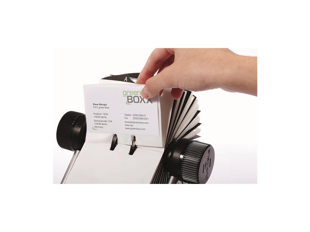 Vizitkár, kovový, pre 400 vizitiek, otočný, horizontálny, DURABLE "VISIFIX®", čierna