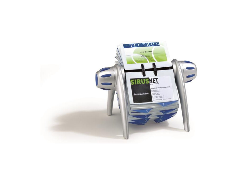 Vizitkár, plastový, pre 400 vizitiek, otočný, horizontálny, DURABLE "VISIFIX®", strieborná