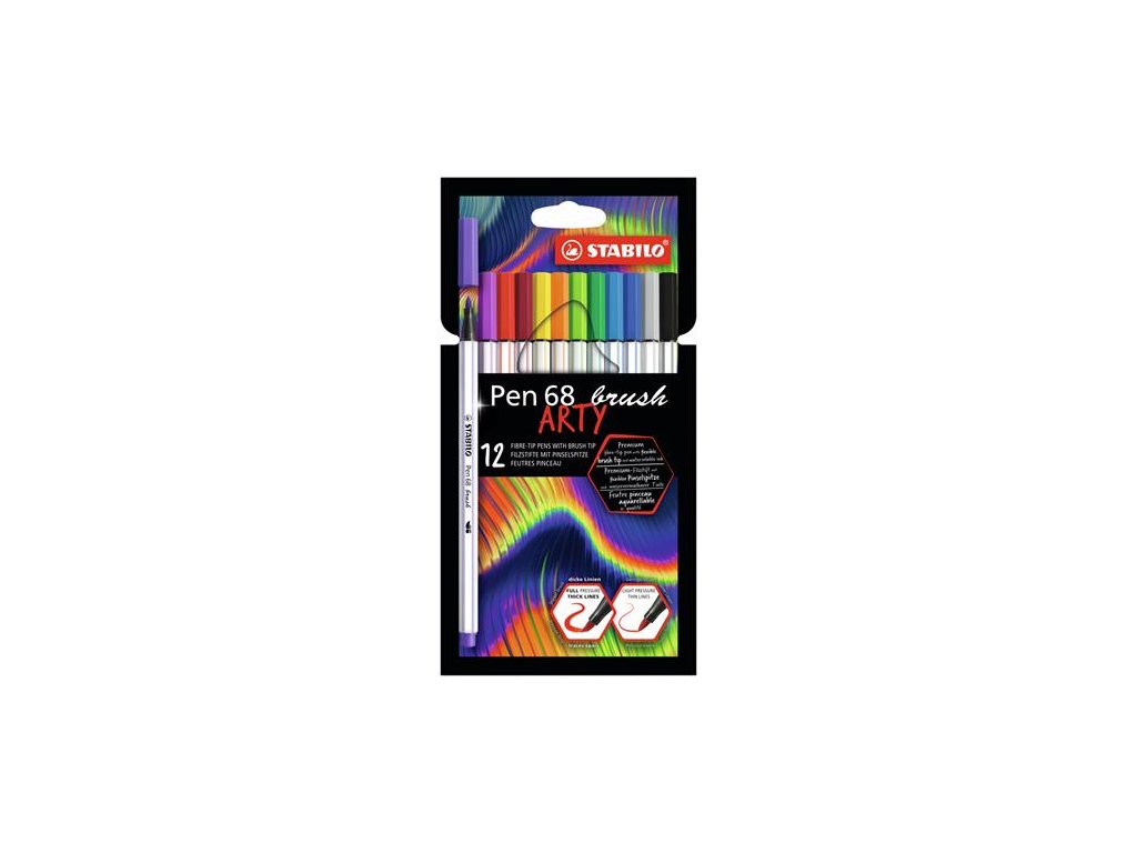 Vláknové fixky, sada, STABILO "Pen 68 brush ARTY", 12 rôznych farieb