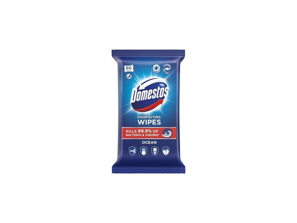 Vlhčené utierky, 60 ks, DOMESTOS "oceán"