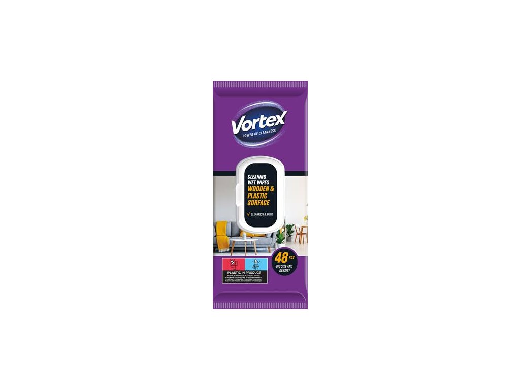 Vlhčené utierky, na drevené a plastové povrchy, 48 ks, VORTEX