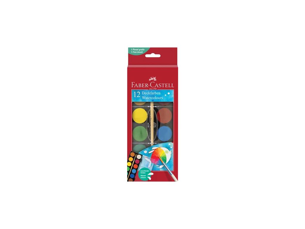 Vodové farby, 12-kusové, 30 mm, so štetcom, FABER-CASTELL