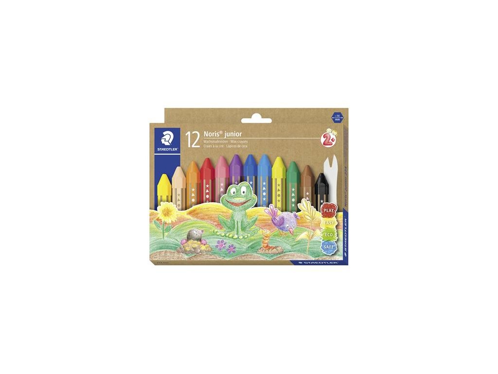 Voskovky Staedtler Noris Junior sú ideálnou voľbou pre žiakov, ktorí sa učia písať a kresliť, odporúčame používať od 2 rokov. kvalitné voskovky z prírodného včelieho vosku rovnomerné a jasné farby odporúčané pre rôzne techniky vysoká odolnosť proti zlomeniu šesťhranný tvar pre ľahké a pohodlné písanie a kreslenie, a zabraňuje skotúľaniu voskoviek zo stola papierový obal s menovkou priemer: 14 mm Značka: STAEDTLER Výrobca: STAEDTLER SE Adresa: Moosäckerstr. 3 , 90427 Nuremberg, Germany Web: http://www.staedtler.com Email: https://www.staedtler.com/intl/en/service/contact/Dodatočné parametre