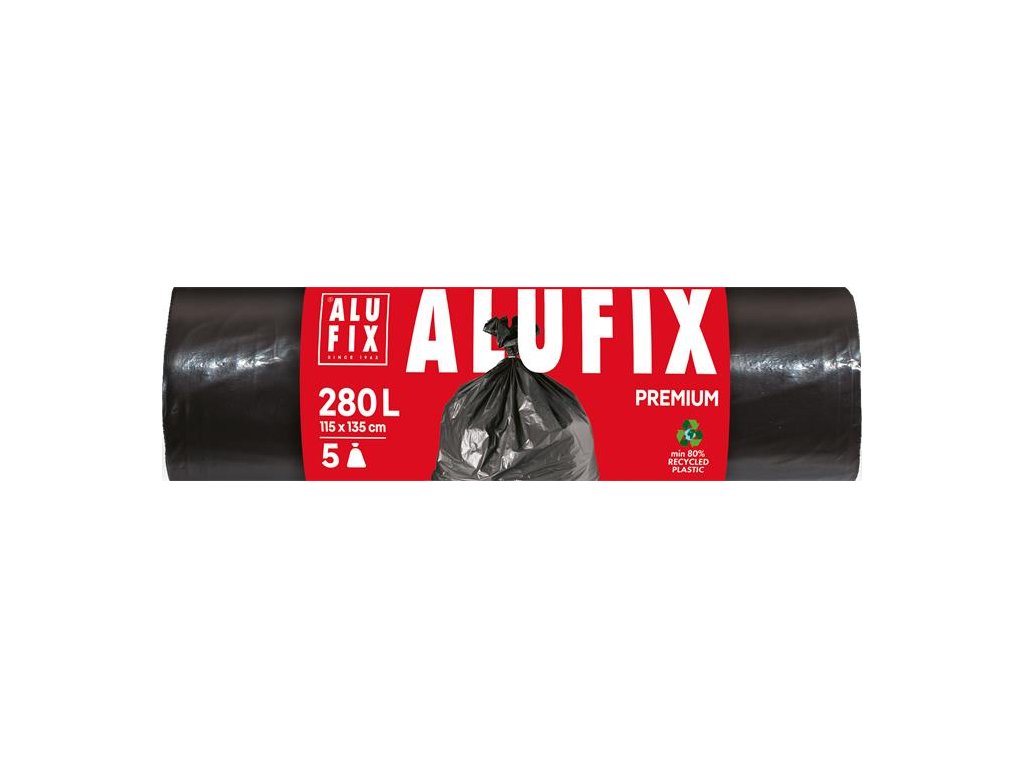 Vrecia na odpadky, 280 l, 5 ks, 115x135 cm, 60 µ, ALUFIX, čierna