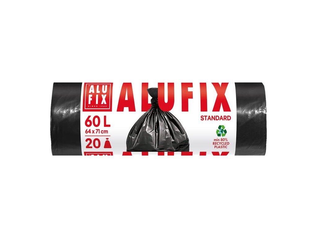 Vrecia na odpadky, 60 l, 20 ks, 64x71 cm, 15 µ, ALUFIX, čierna