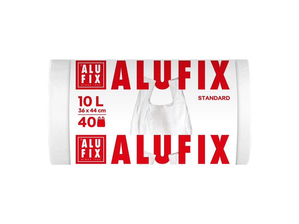 Vrecia na odpadky, s uškom, 10 l, 40 ks, 36x44 cm, 10 µ, ALUFIX, biela