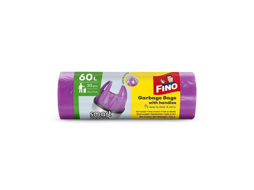 Vrecia na odpadky, s uškom, 60 l, 20 ks, 59x71 cm, 12 µ, FINO "Smart handles", fialová