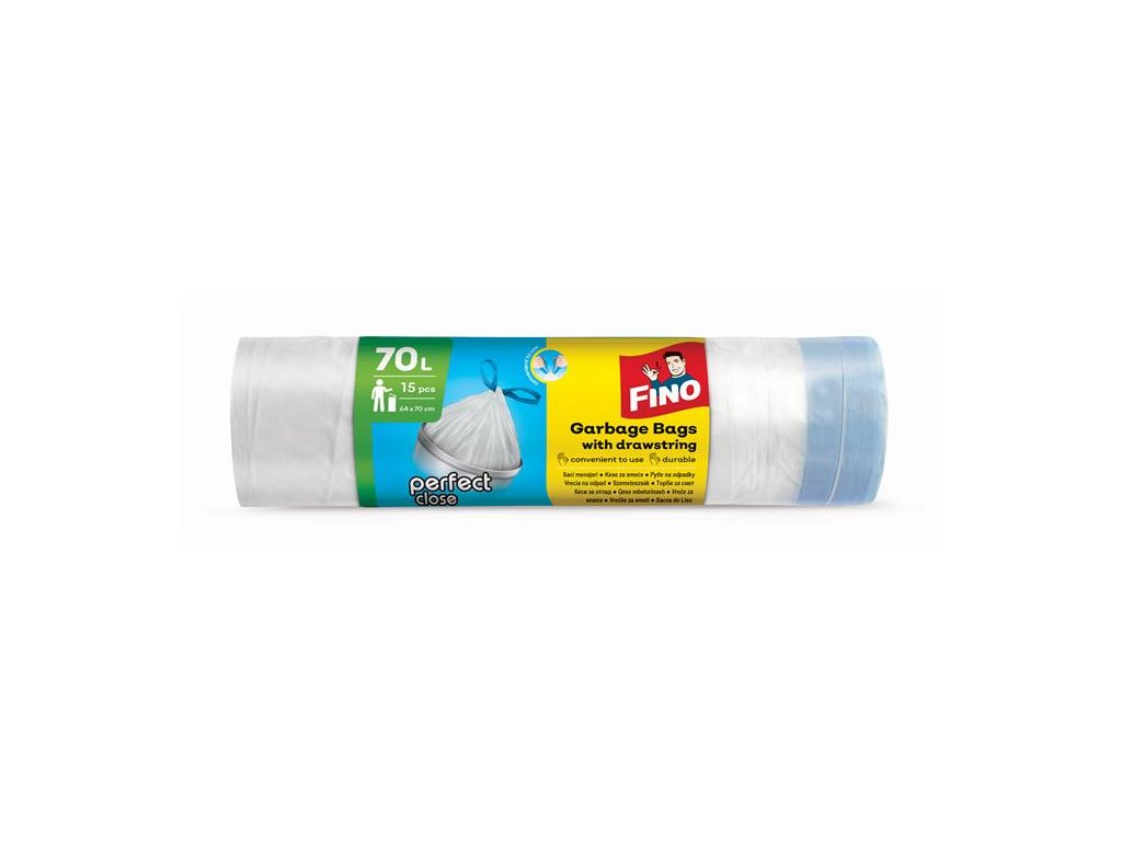 Vrecia na odpadky FINO Perfect Close so zaťahovacou páskou uľahčujú skladovanie, sú hygienické a praktické.- pokročilý, pevný materiál