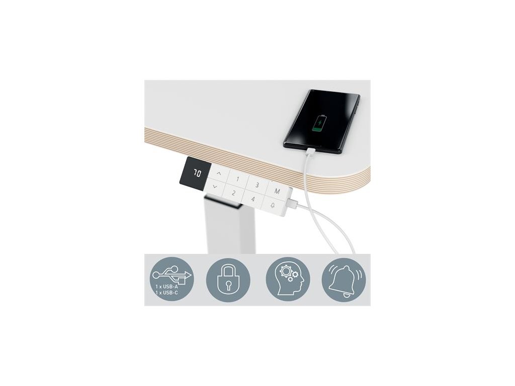 Kompaktný a štýlový elektrický zdvíhací stôl na miesta s obmedzeným priestoromĽahké prepínanie medzi sedením a státím s dôvtipnou funkciou pripomenutia zmeny polohy podporuje pohyb a precvičenie svalov, čím pozitívne ovplyvňuje pocit pohody pri práci.