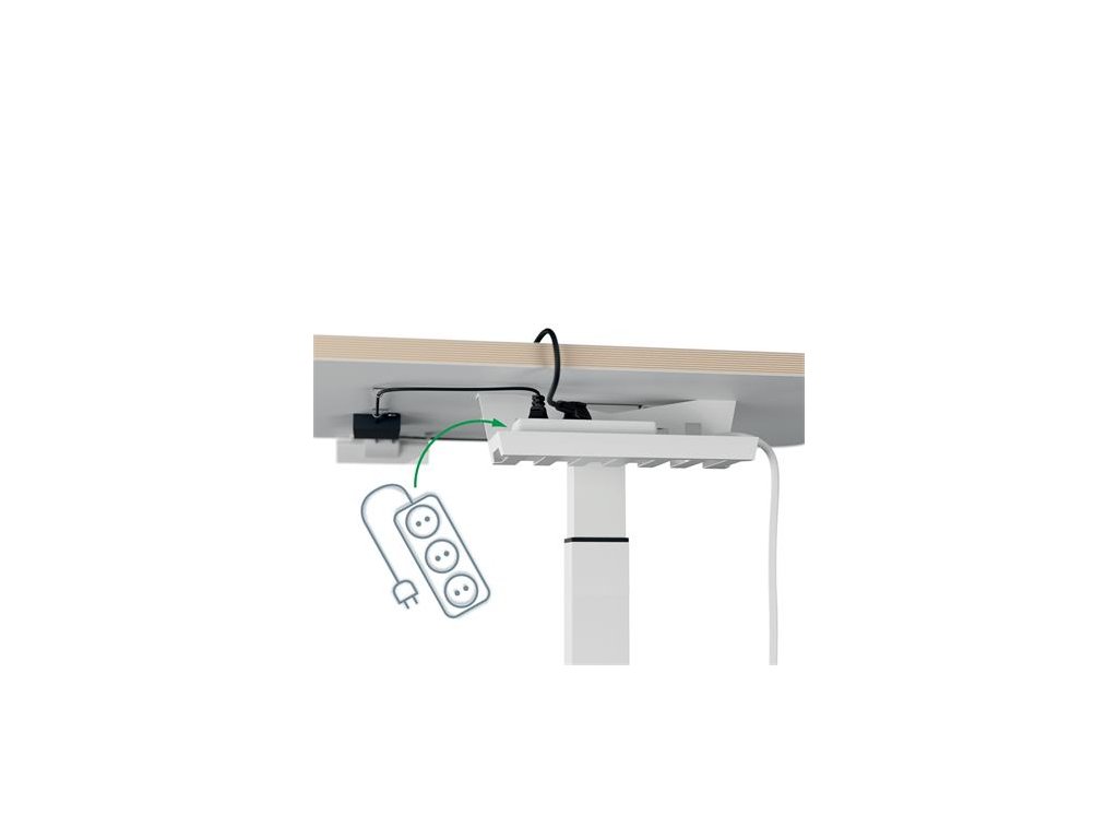 Súčasťou balenia je držiak na káble, ktorý možno pripevniť pod dosku stola a umiestniť do neho napájaciu zásuvku a 4 samouťahovacie priehľadné svorky na zopnutie káblov, aby sa zamedzilo ich zamotávaniu