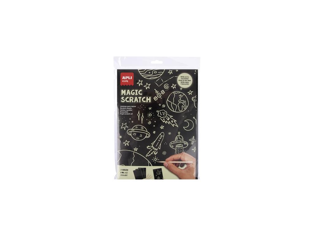 Vyškrabávací obrázok, svietiaci, A4, APLI Kids "Magic Scratch", 8 hárkov