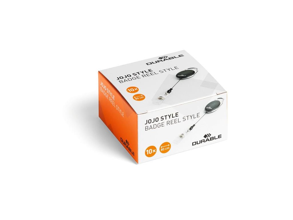 - štýlový oválny vysúvací kotúč s možnosťou vysunutia do 80 cm a kovovým klipom na rubovej strane - vhodný na uchytenie všetkých visačiek značky DURABLE s perforáciouDodatočné parametre