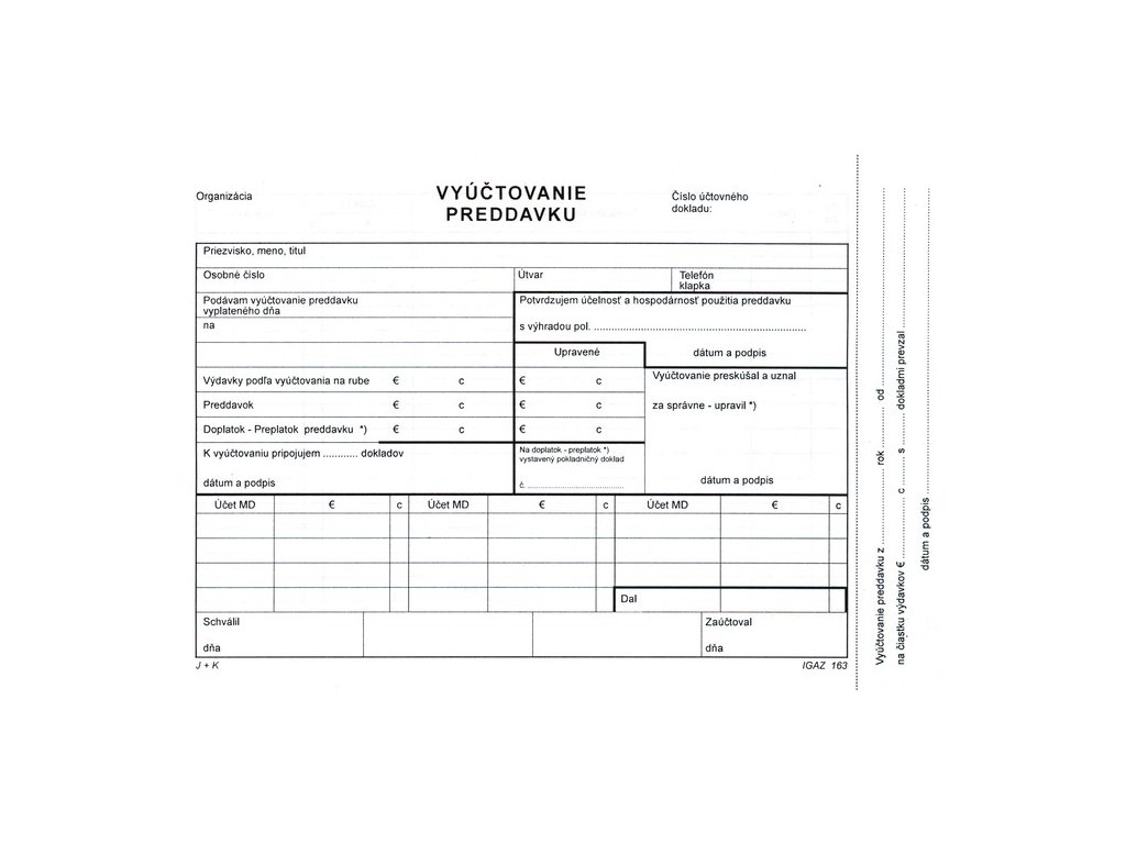 Vyúčtovanie preddavku A5