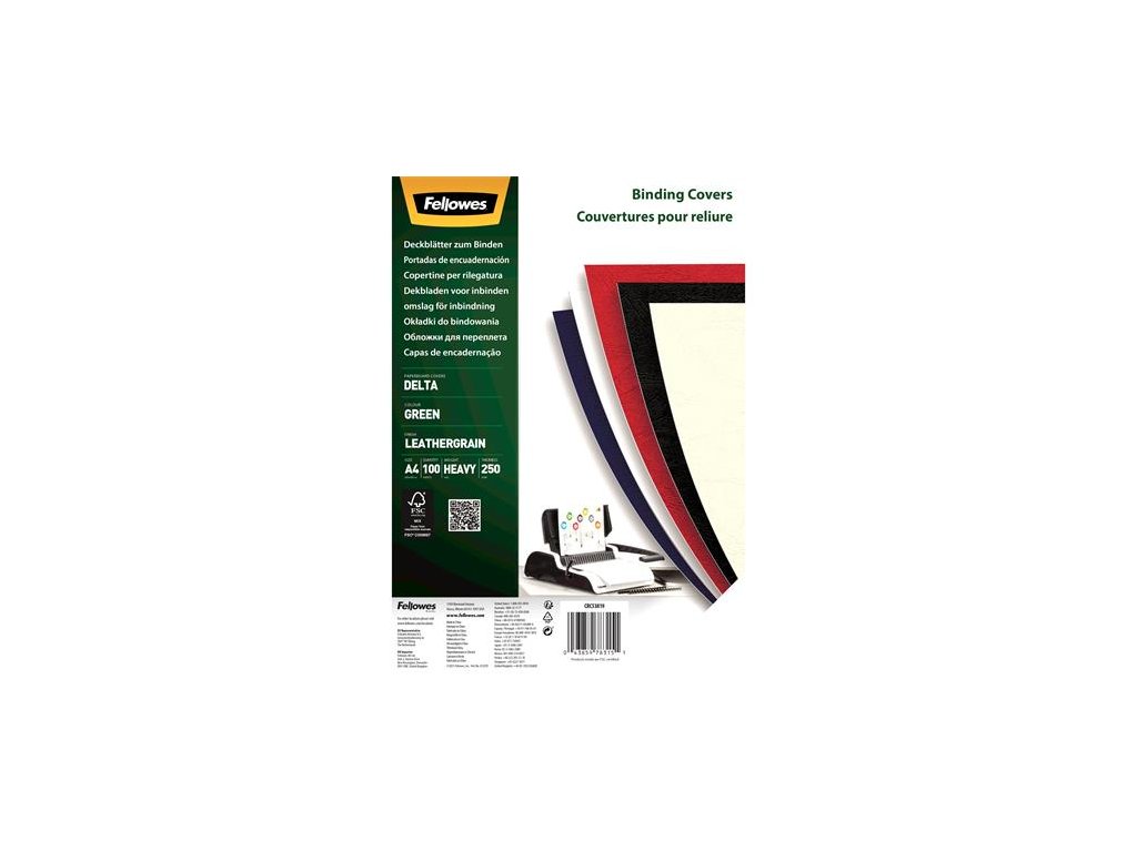 Zadný obal ku špirálovej väzbe, A4, 250 g, matný, FELLOWES "Delta", zelená, 100 ks