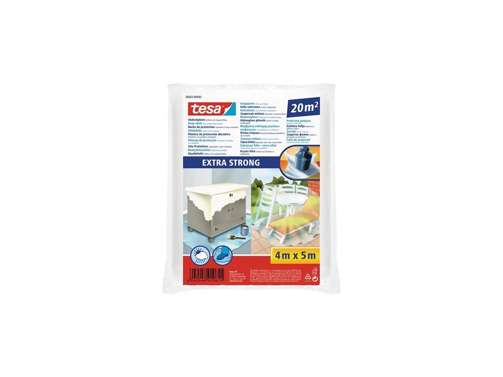 - extra silná zakrývacia fólia tesa® je dokonalá plachta pre maľovanie a renováciu - vyrobená z vysoko odolnej PC fólie odolnej proti roztrhnutiu, ktorá dokonale ochráni pred nečistotami, rozliatou farbou a ďalšími kvapalinami - skvelá voľba pre zakrytie veľkých plôch - možnosť použitia ako profesionálna maliarska plachta z plastu v interiéry aj exteriéry domu - odolná proti roztrhnutiu - odolná voči rozpúštadlám a riedidlám - kvalitná PE fólia - praktická perforácia na každom 1 m Značka: TESA Výrobca: tesa SE Adresa: Hugo-Kirchberg-Str 1 DE-22848 Norderstedt, Germany Web: www.tesa.com/service Email: support@tesa.comDodatočné parametre