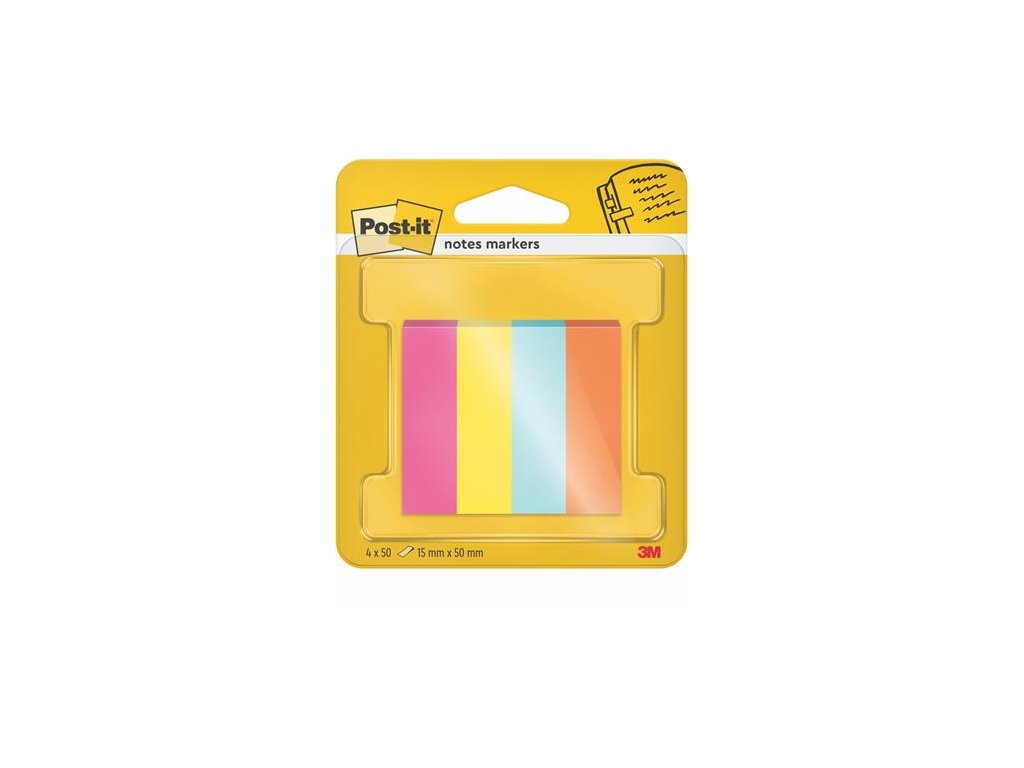 Záložka, papierová, 4x50 listov, 15x50 mm, 3M POSTIT "Poptimistic", rôzne farby