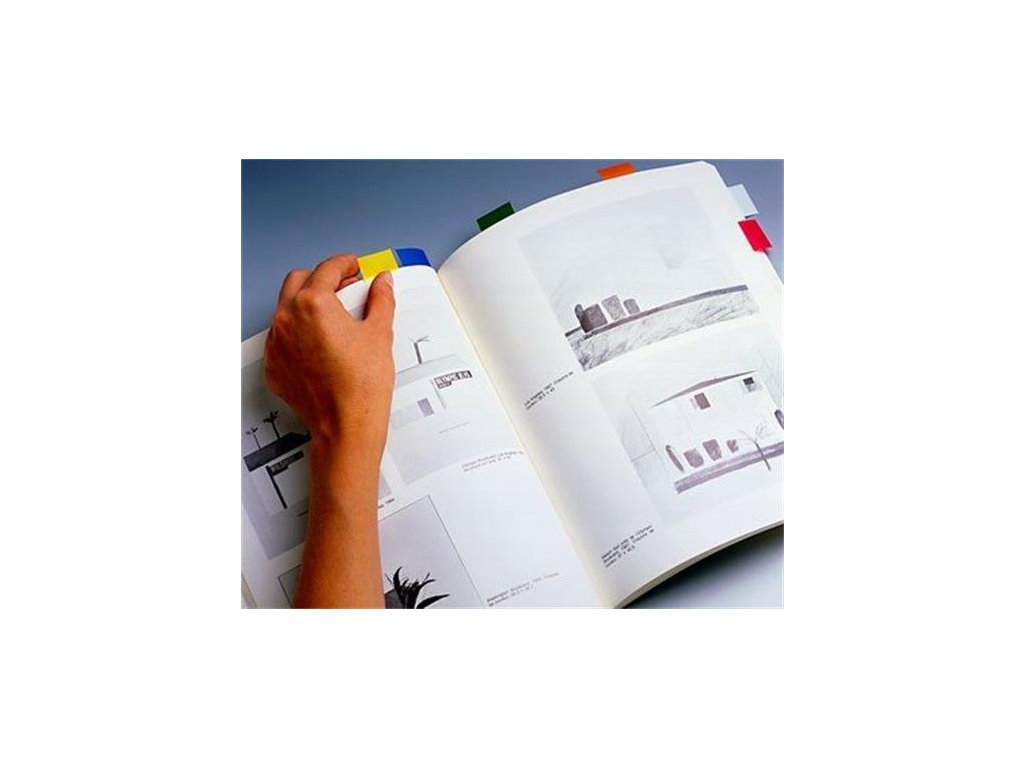na triedenie informácií na základe farebných kódov samolepiace záložky sa dajú nielen premiestniť ale aj popisovať 50 ks záložiek/dávkovač rozmery: 25,4x43,2 mm blistrové balenieDodatočné parametre