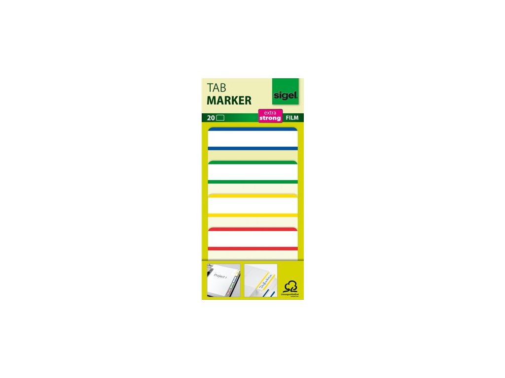 Záložky, spevnené, biele okraje, 50x38 mm, 4x5 ks, SIGEL, mix farieb