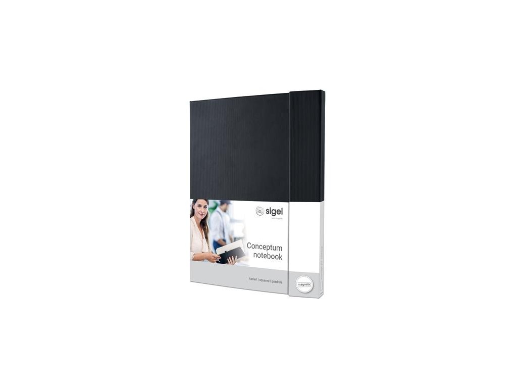 Zápisník, exkluzívny, A4+, štvorčekový, 97 strán, s magnetickým zatváraním, SIGEL "Conceptum", čierna