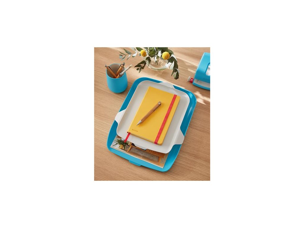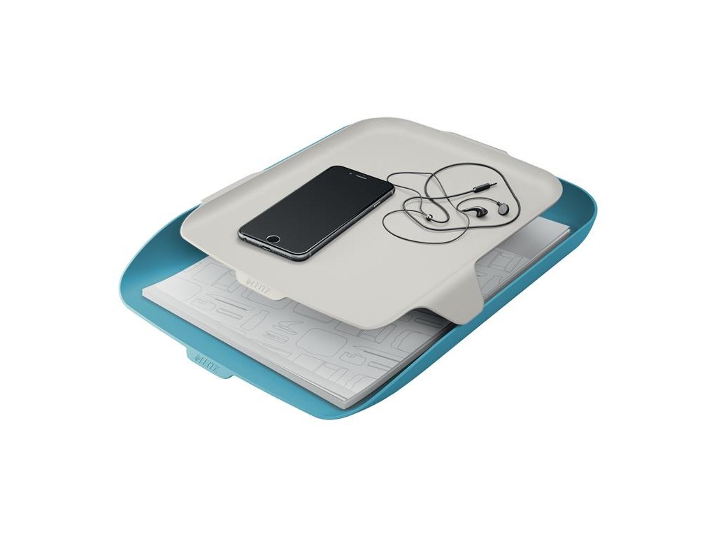 Zásobník na dokumenty s organizérom, plastový, LEITZ "Cosy", pokojná modrá