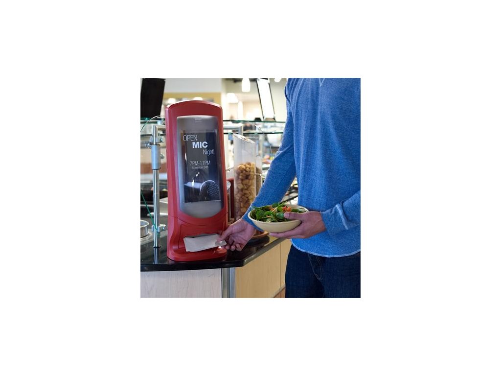 Tork Xpressnap® vysokokapacitný zásobník na servítky je ideálny pre reštaurácie s obmedzenými službami s vysokou návštevnosťou. Tento moderný zásobník vydáva servítky vždy po jednej, čím zlepšuje hygienu a znižuje spotrebu minimálne o 25 % v porovnaní s tradičnými zásobníkmi servítok. Stojanový dizajn znižuje potrebný priestor na pulte Možnosť montáže na stenu umožňuje rýchlu a stálu inštaláciu Je vyrobený z odolného materiálu, ktorý sa ľahko čistí a znižuje tak potrebu údržby a náklady na prácu. Prispôsobiteľné okno AD-A-Glance® slúži ako reklamný nástroj na podporu vašich výrobkov a komunikuje s vašimi hosťami. materiál: plast farba: červená Rozmery: výška: 622 mm šírka: 235 mm hĺbka: 235 mm kód výrobcu: 272212 Značka: TORK Výrobca: Essity Hungary Kft. Adresa: Budapest, 1021 Budakeszi út 51., Hungary Web: tork.hu Email: torkcontact@essity.comDodatočné parametre