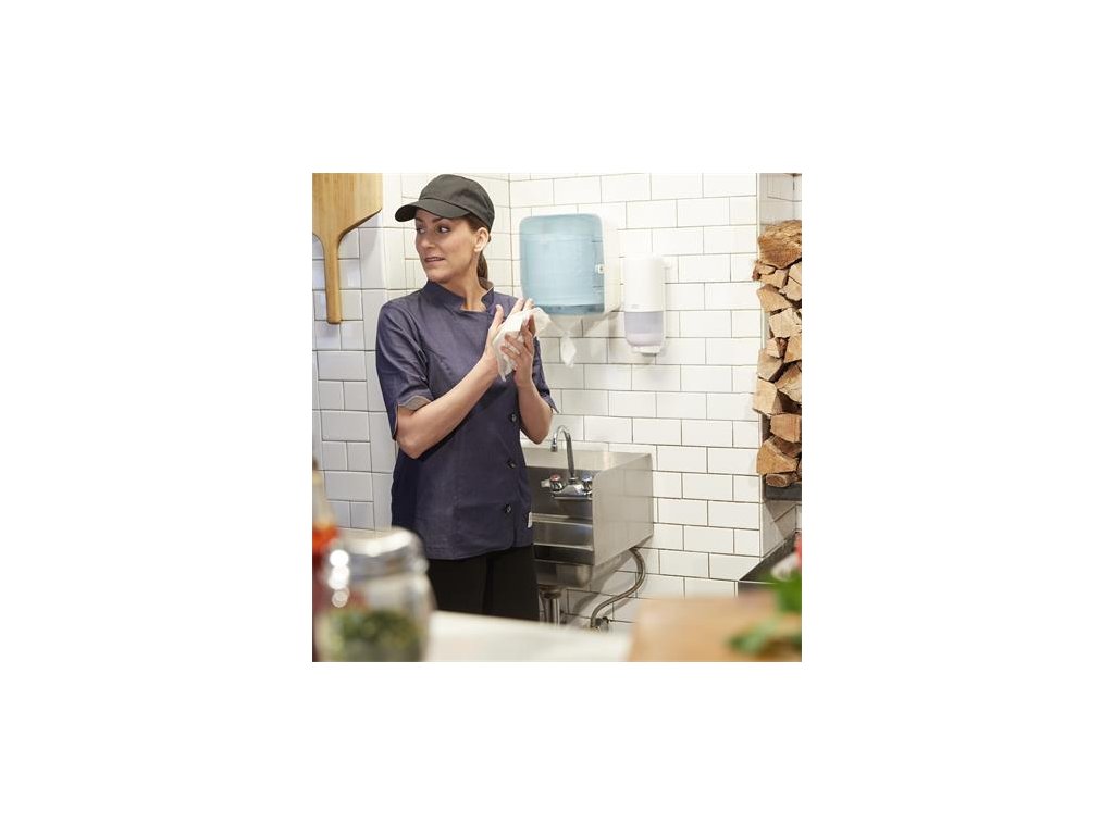 Zásobník so stredovým odvíjaním a dávkovaním po jednom útržku, M4 systém, Performance, TORK "Reflex™", biela/tyrkysová