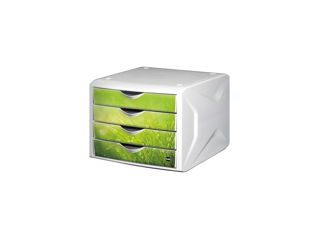 Zásuvkový box na dokumenty, plastový, 4 zásuvky, HELIT "Chameleon", biela-zelená