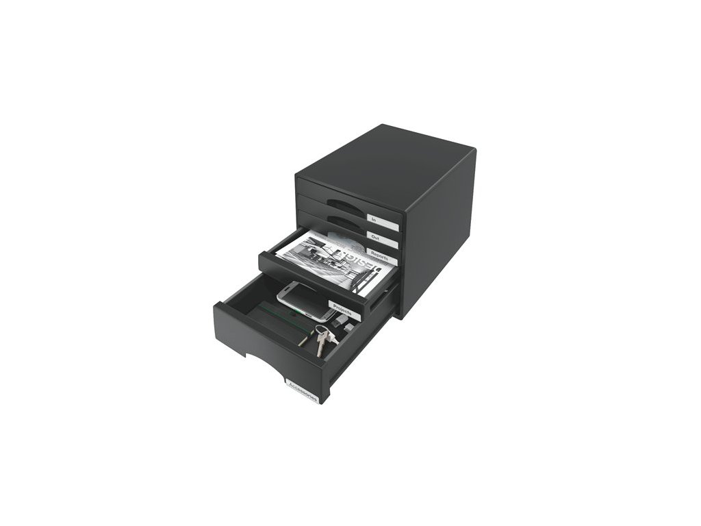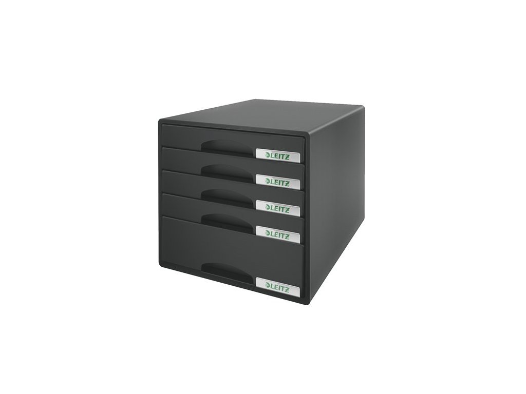 Zásuvkový box na dokumenty, plastový, 5 zásuviek, LEITZ "Plus", čierny