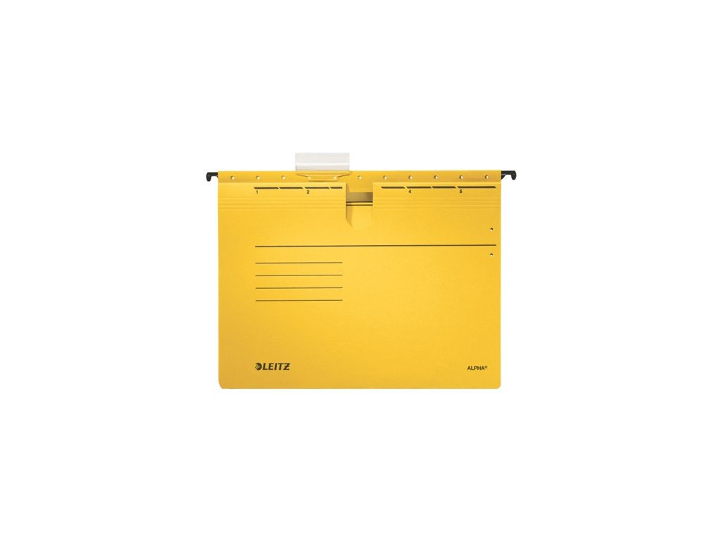 Závesná zakladacia doska, s rýchloviazacím mechanizmom, kartón, A4, LEITZ "Alpha", žltá