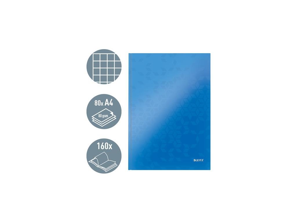 Záznamová kniha, A4, štvorčeková, 80 listov, tvrdá obálka, LEITZ "Wow", modrá