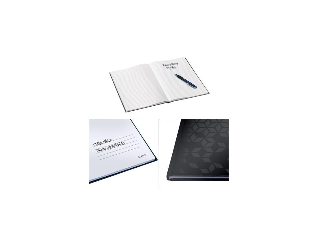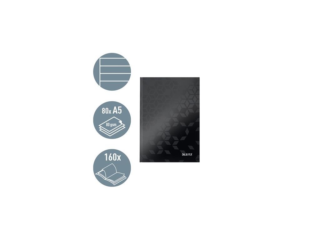 Záznamová kniha, A5, linajková, 80 listov, tvrdá obálka, LEITZ "Wow", čierna